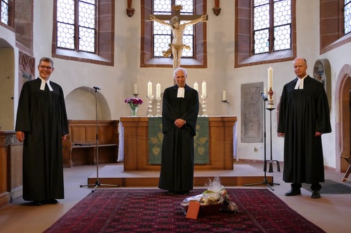 Der Gottesdienst zur feierlichen Verabschiedung mit Propst Oliver Albrecht und Dekan Dr. Martin Fedler-Raupp, zu dem alle Gemeindemitglieder herzlich eingeladen waren, fand am 4. Juni statt. Beim anschließenden Empfang im Garten der Kita Arche Noah haben sich zahlreiche Wegbegleiter persönlich von Herrn Pfarrer Hackel verabschiedet.
